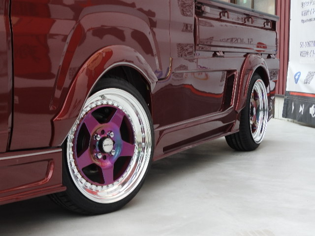 レッドボディに差し色/シルバーで魅せ、ノーマル車高に16インチ/オーダーカラーの唯一無双スタイル♪