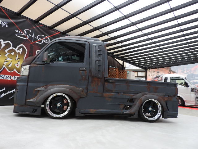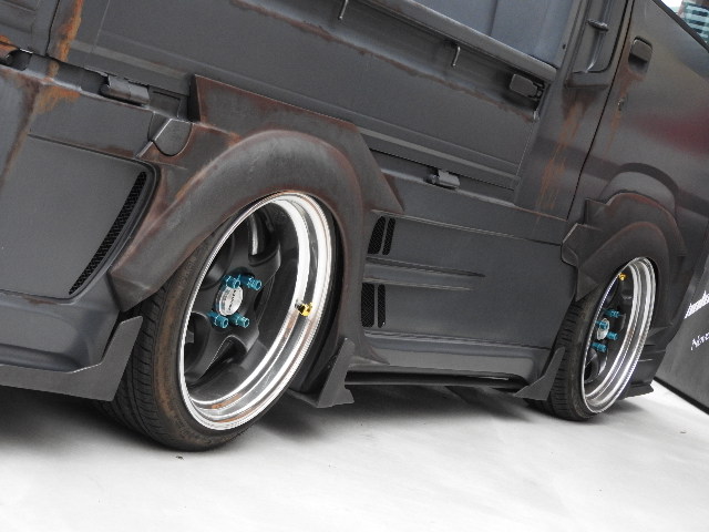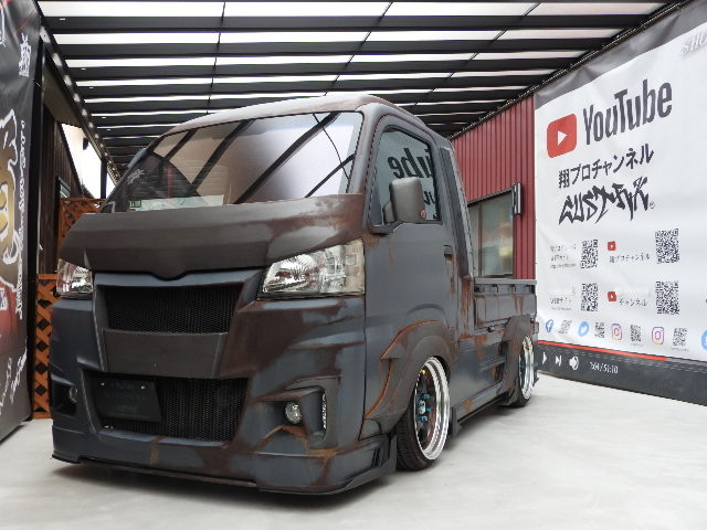 全塗装/エージングに、エアロの同色.差し色/ブラックで魅せ、エアサスに16インチの小型貨物格上げされた唯一無双スタイル♪