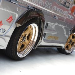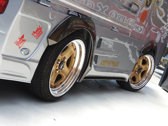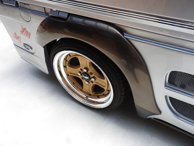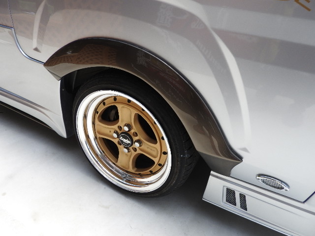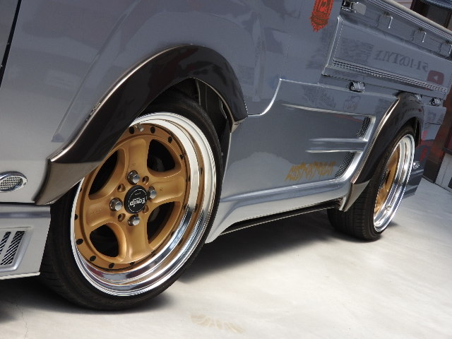 シルバーボディに、差し色/ブラウンで魅せ、ローダウンに15インチで小型貨物の唯一無双スタイル♪