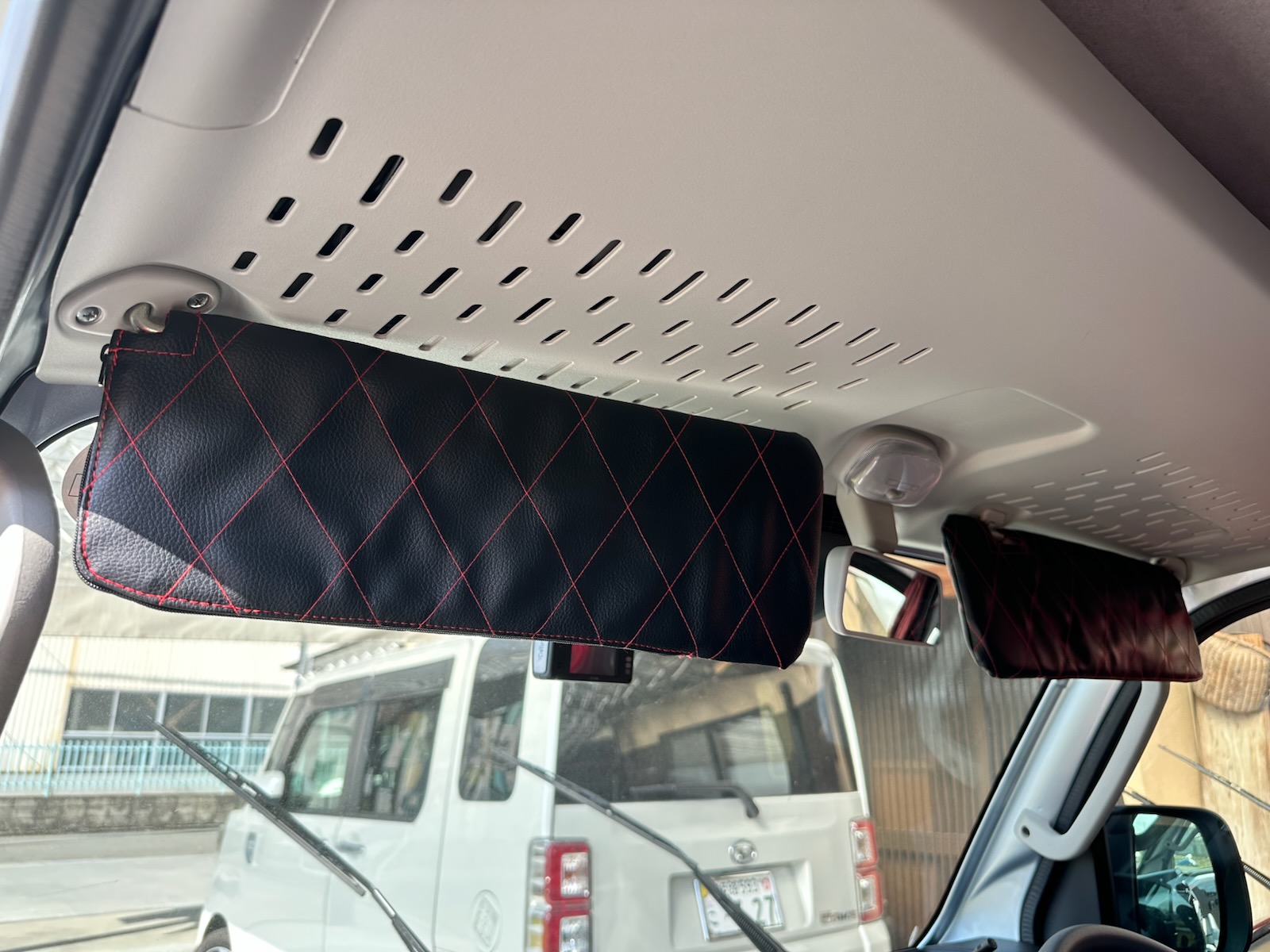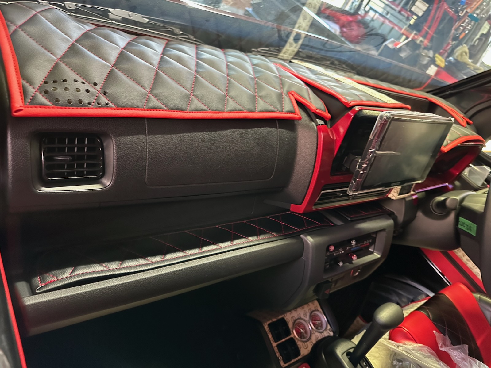 - バケット翔+天井/オーバーヘッドシェルフ/バイザー張替:レッドxブラックキルティング